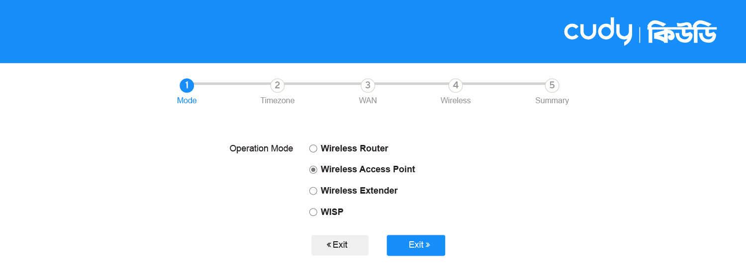 From the Quick Setup, select Wireless Access Point Mode, then hit Next.