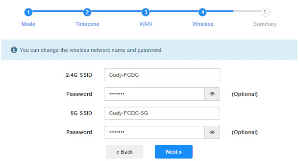 Create a custom SSID (your Wi-Fi name) and password for the new access point.
